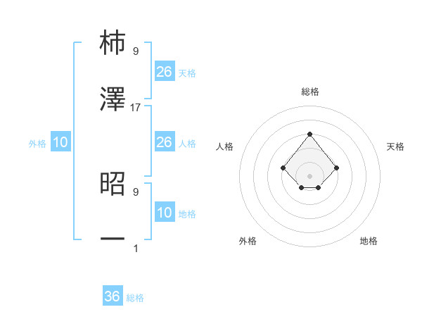 柿澤 昭一さんの総格は36画の3点!