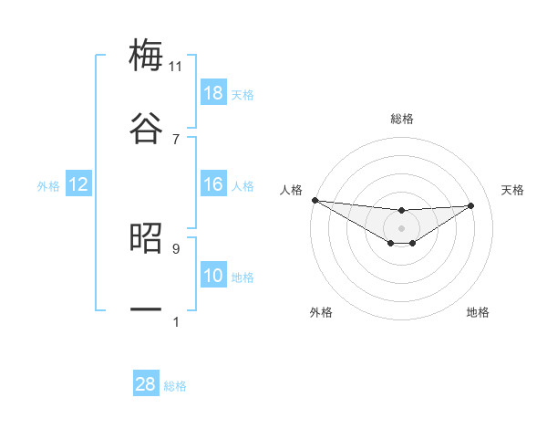 梅谷 昭一さんの天格は18画の4点!