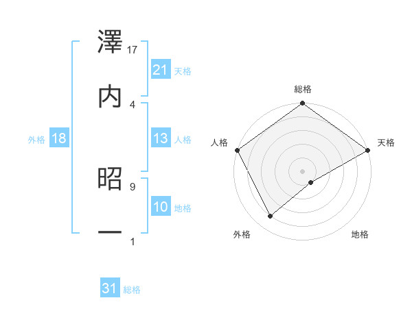 澤内 昭一さんを姓名の画数から五運を鑑定