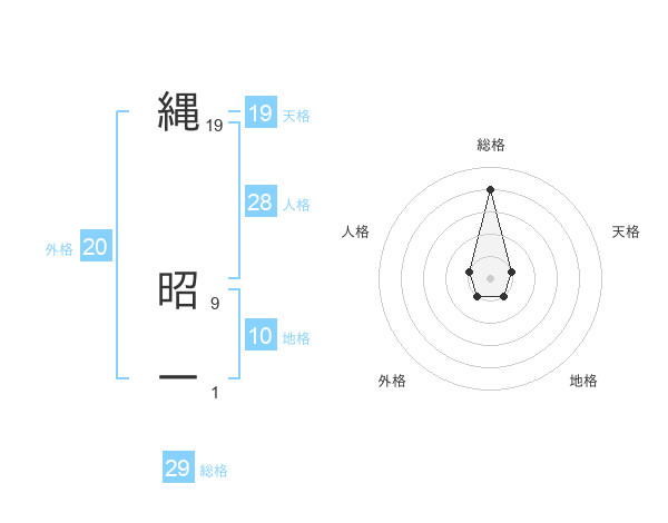 縄 昭一さんの総格は29画の4点!