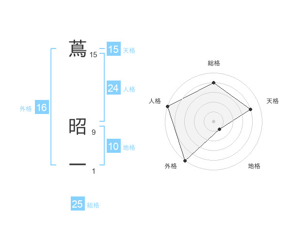 蔦 昭一さんの外格は16画の5点!