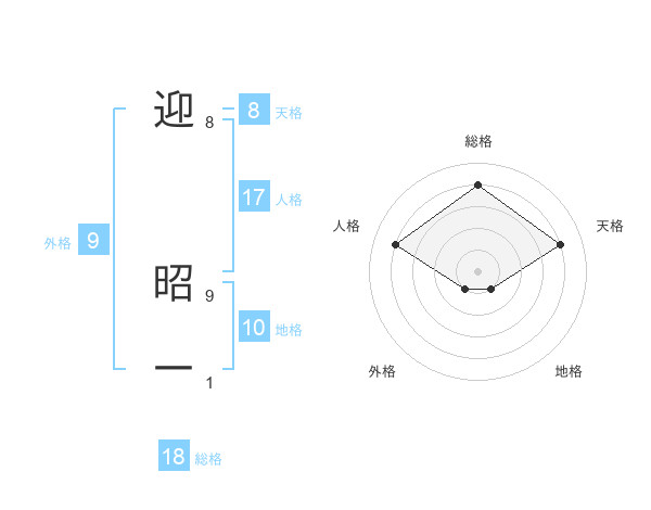 迎 昭一さんの総格は18画の4点!