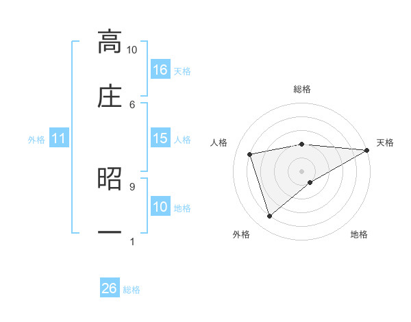 高庄 昭一さんを姓名の画数から五運を鑑定