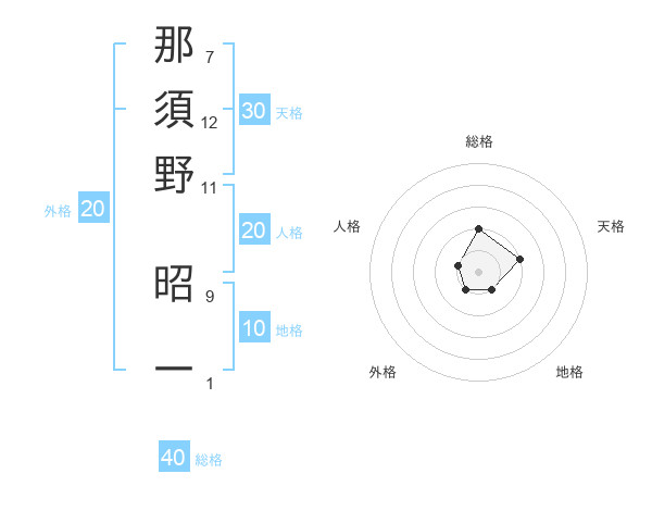 那須野 昭一さんの総格は40画の2点