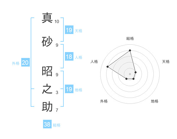 真砂 昭之助さんの総格は38画の4点!