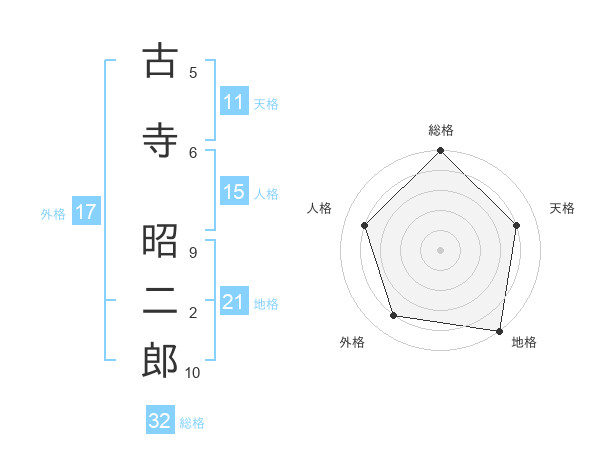 古寺 昭二郎さんを姓名の画数から五運を鑑定