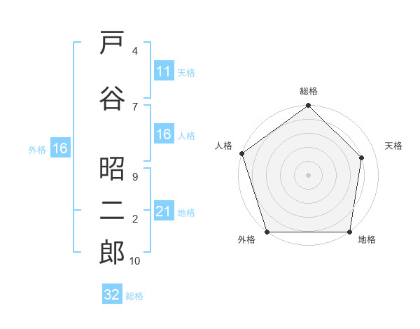 戸谷 昭二郎さんの総格は32画の5点!