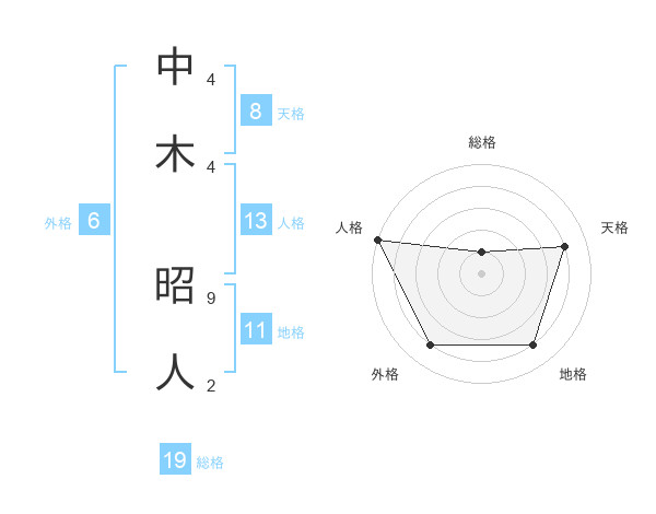 中木 昭人さんの天格は8画の4点!