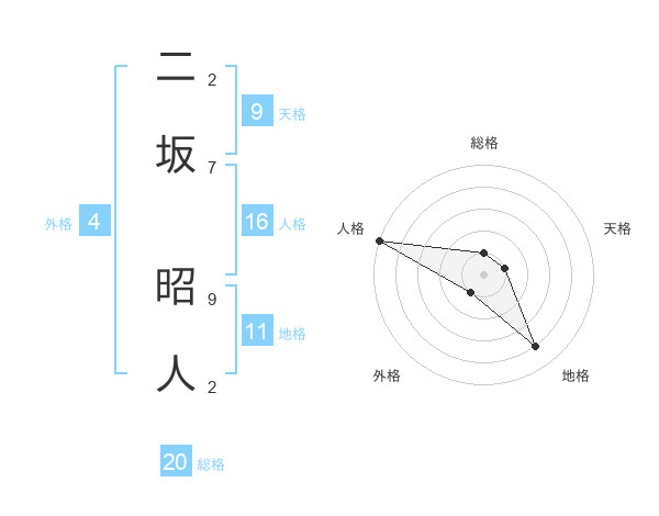 二坂 昭人さんを姓名の画数から五運を鑑定