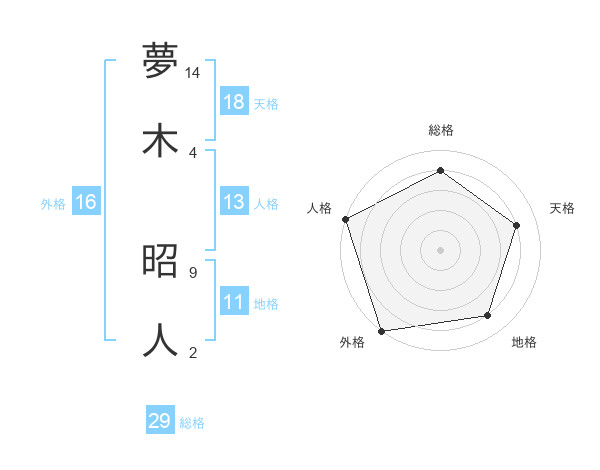 夢木 昭人さんの総格は29画の4点!