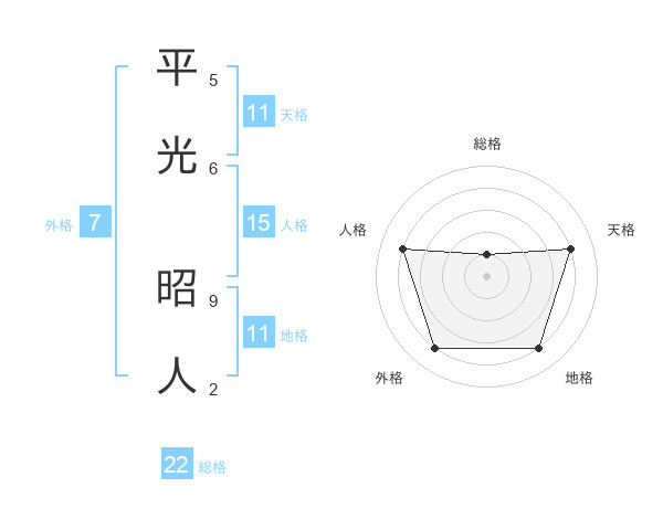 平光 昭人さんの総格は22画の1点!