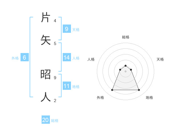 片矢 昭人さんの総格は20画の1点!