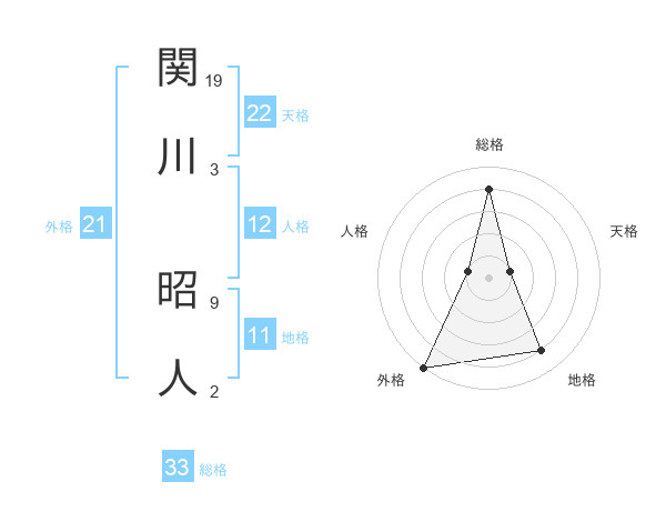 関川 昭人さんの総格は33画の4点!