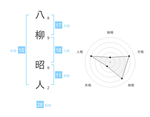 八柳 昭人さんの天格は17画の4点!