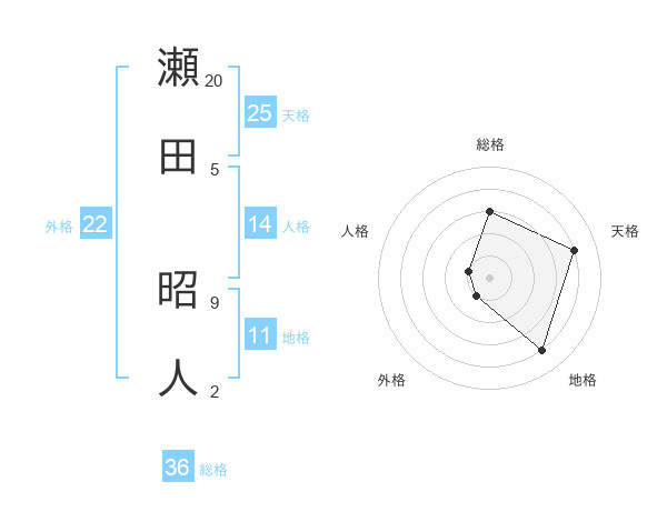 瀬田 昭人さんの天格は25画の4点!