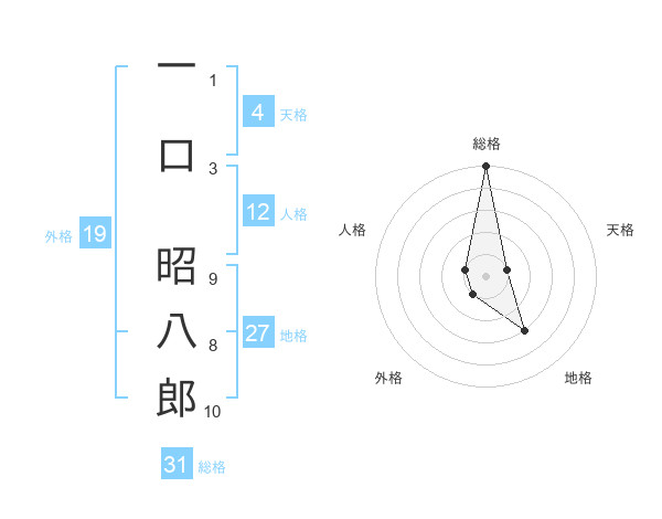 一口 昭八郎さんの総格は31画の5点!
