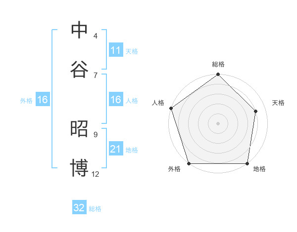 中谷 昭博さんの総格は32画の5点!