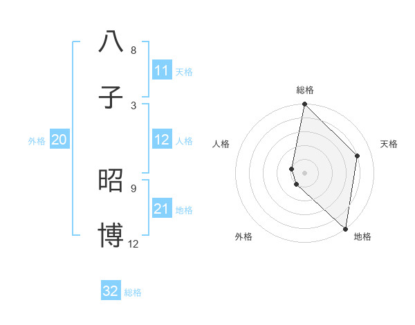 八子 昭博さんの天格は11画の4点!