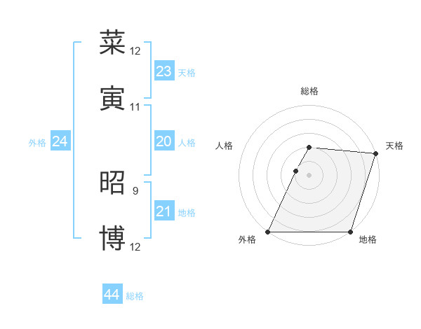 菜寅 昭博さんの外格は24画の5点!