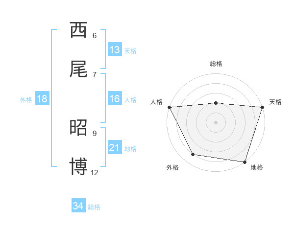 西尾 昭博さんの天格は13画の5点!