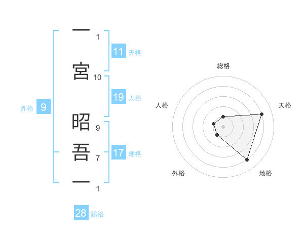 一宮 昭吾一さんを姓名の画数から五運を鑑定