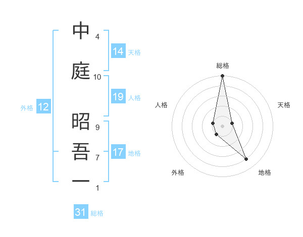 中庭 昭吾一さんを姓名の画数から五運を鑑定