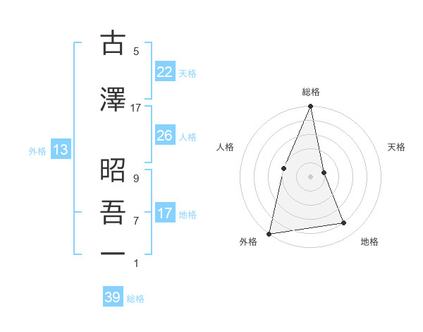 古澤 昭吾一さんを姓名の画数から五運を鑑定