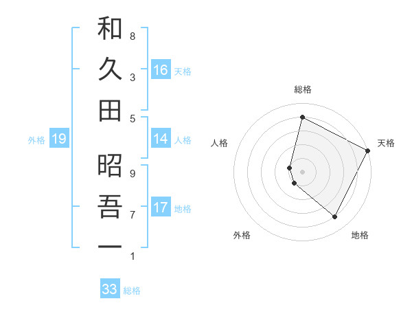 和久田 昭吾一さんを姓名の画数から五運を鑑定