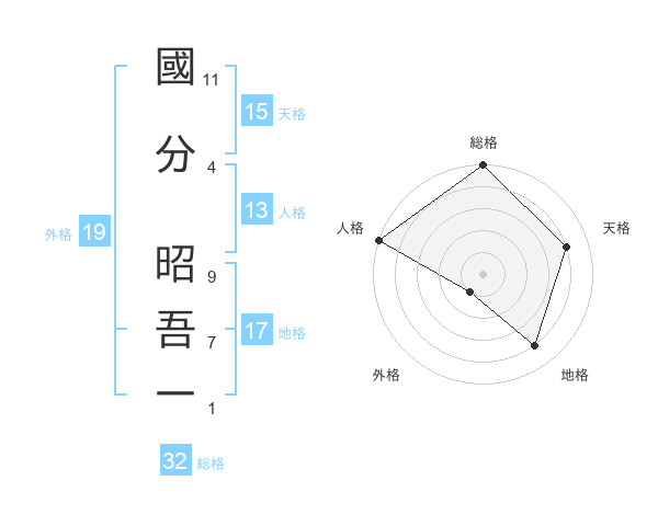 國分 昭吾一さんの天格は15画の4点!