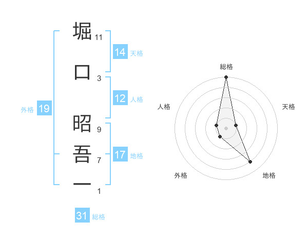 堀口 昭吾一さんの総格は31画の5点!
