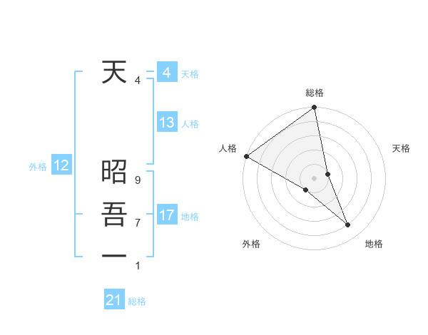 天 昭吾一さんを姓名の画数から五運を鑑定