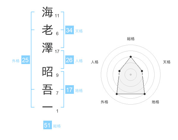 海老澤 昭吾一さんを姓名の画数から五運を鑑定