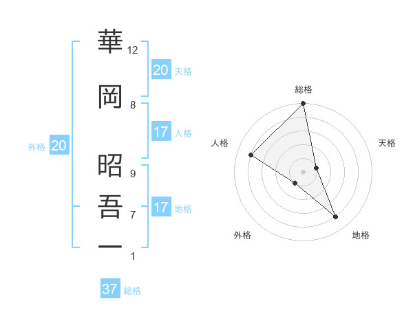 華岡 昭吾一さんの総格は37画の5点!