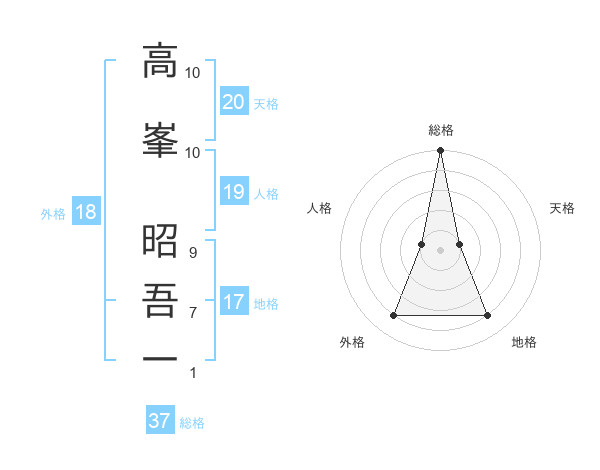 高峯 昭吾一さんの天格は20画の1点!
