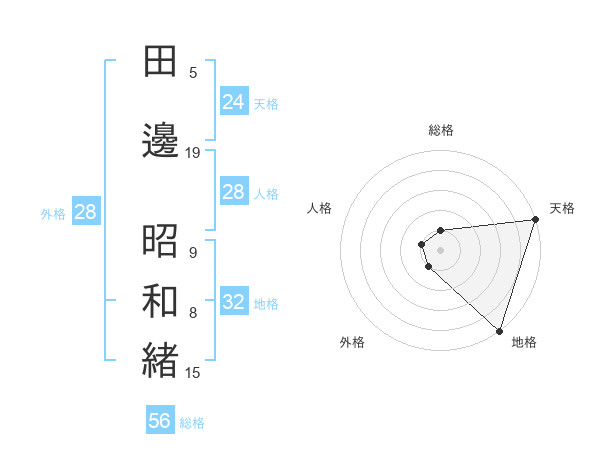 田邊 昭和緒さんを姓名の画数から五運を鑑定