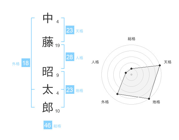 中藤 昭太郎さんの天格は23画の5点!