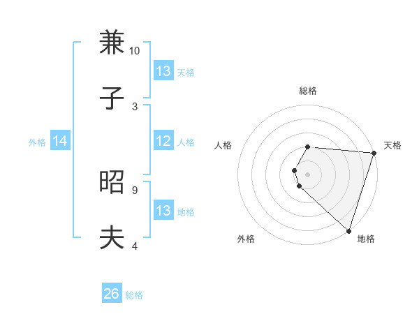 兼子 昭夫さんの総格は26画の2点!