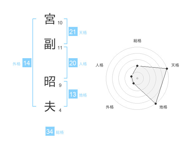 宮副 昭夫さんを姓名の画数から五運を鑑定