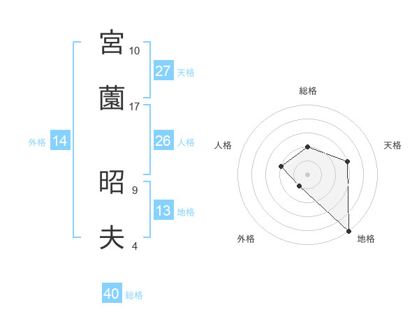 宮薗 昭夫さんの地格は13画の5点!