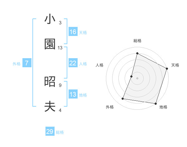 小園 昭夫さんの総格は29画の4点!