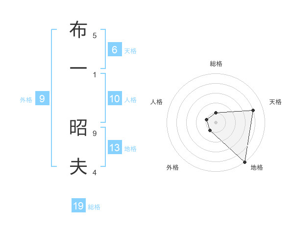 布一 昭夫さんの天格は6画の4点!