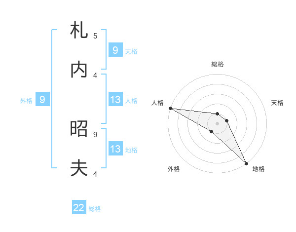 札内 昭夫さんの総格は22画の1点!