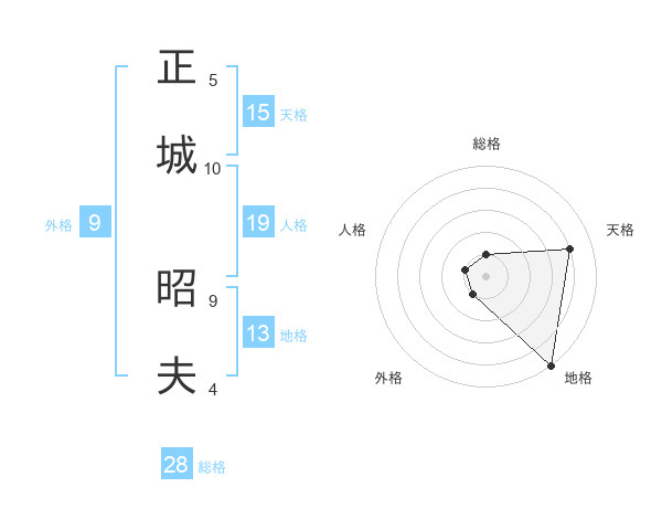 正城 昭夫さんの総格は28画の1点!
