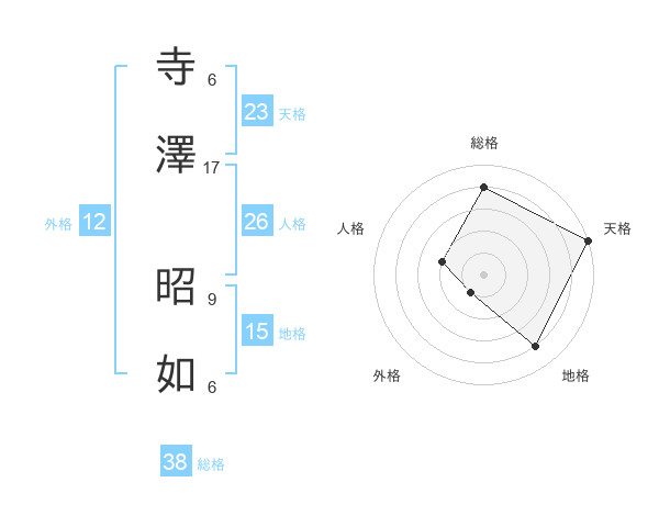 寺澤 昭如さんの総格は38画の4点!