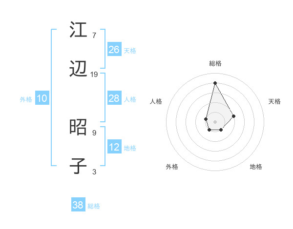 江辺 昭子さんの総格は38画の4点!