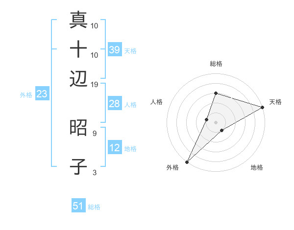 真十辺 昭子さんの総格は51画の3点!