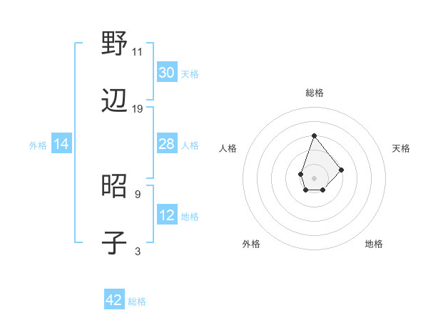 野辺 昭子さんの総格は42画の3点!