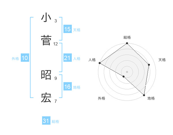 小菅 昭宏さんの総格は31画の5点!