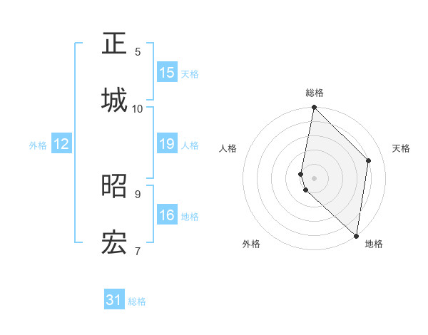 正城 昭宏さんを姓名の画数から五運を鑑定
