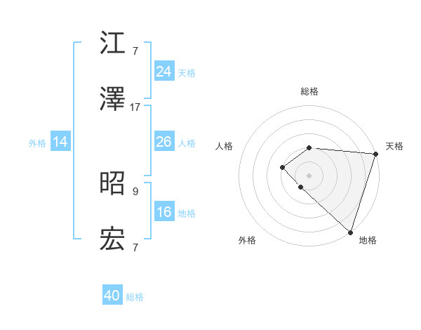 江澤 昭宏さんを姓名の画数から五運を鑑定